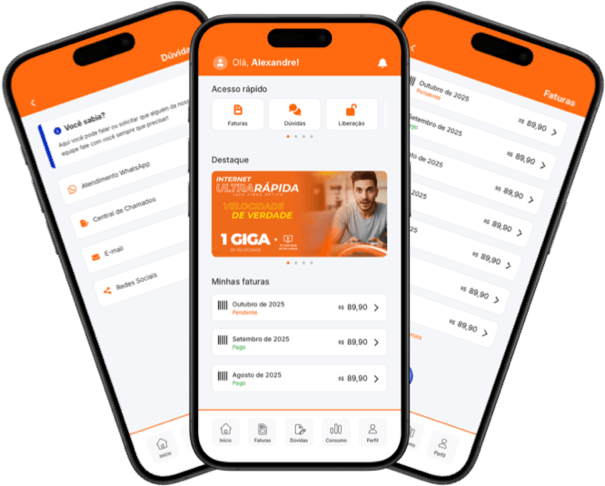 Nosso app de auto atendimento facilita sua vida! Gerencie sua conta, consulte faturas, solicite suporte e muito mais - tudo de forma rápida e prática.